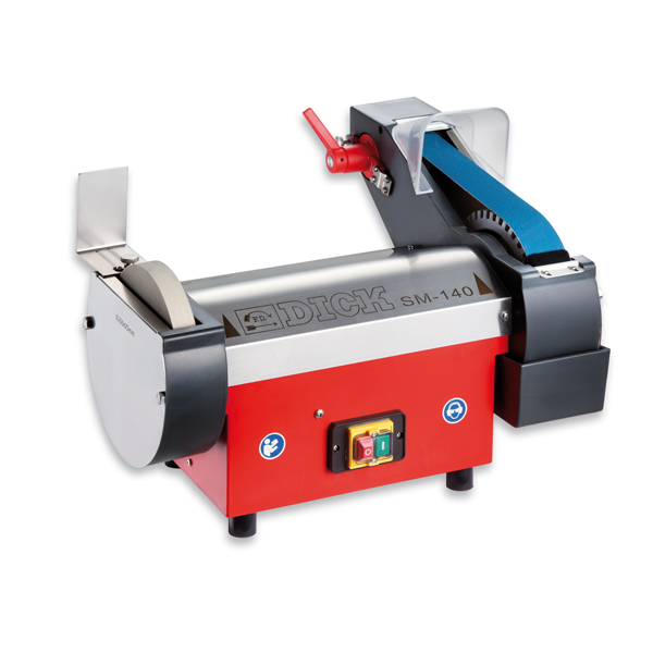 Die wassergekühlte Bandschleifeinrichtung verhindert ein Überhitzen der Klinge und bindet den Staub in der Luft; Abziehen und Polieren auf der Filzscheibe für höchste Ansprüche; Schleifen und Polieren der gesamten Klinge bis zum Griff; langes Nassschleifband mit 1.000 mm für hohe Standzeit; individueller, balliger Anschliff je nach Einsatz möglich; robuste Edelstahlausführung; geräusch- und vibrationsarmer Motor
