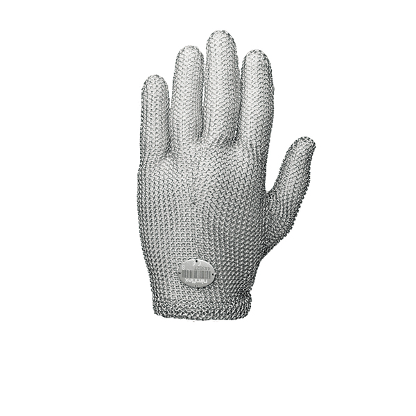 niroflex fix Höchste Qualität durch Mikroplasma-verschweißtes Ringgeflecht (Ø 4,0 mm/Drahtstärke 0,50 mm) – leicht und mit idealen hygienischen Voraussetzungen, rechts und links tragbar. Farbige Stulpenstege für schnelle Größenidentifikation. Patentierter selbstjustierender Edelstahl-Federverschluss, einfachstes An- und Ausziehen. niroflex fix-Ringgeflecht-Handschuhe sind geprüft nach DIN EN 1082-1.
